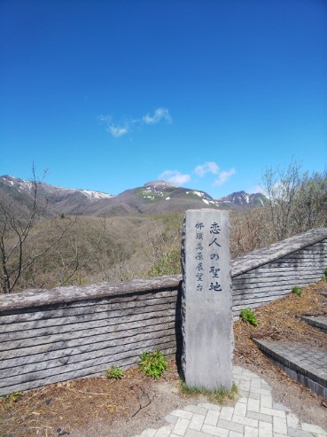 那須町湯本の温泉街にあります。この右側に由来や案内図があり、恋人の聖地 展望台までのハイキングコースと書いてあったので登ってきました。(スニーカー以上の装備が必要です)30分ぐらい歩きます。