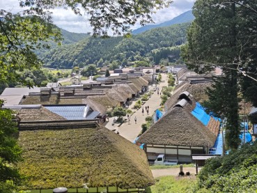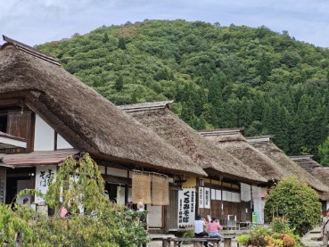 塔のへつりから車で15分ぐらい走ります。茅葺きの屋根がたくさん並んでます。
