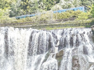 こちらは4月下旬に那須方面へ行く途中、烏山にある龍門の滝に寄ってみました。水量は豊富でしたがちょっと濁っているような感じでした。たまたま電車が通る時間帯(時刻表が観瀑台の手すりに有りました)に遭遇したのでスマフォで撮りました。